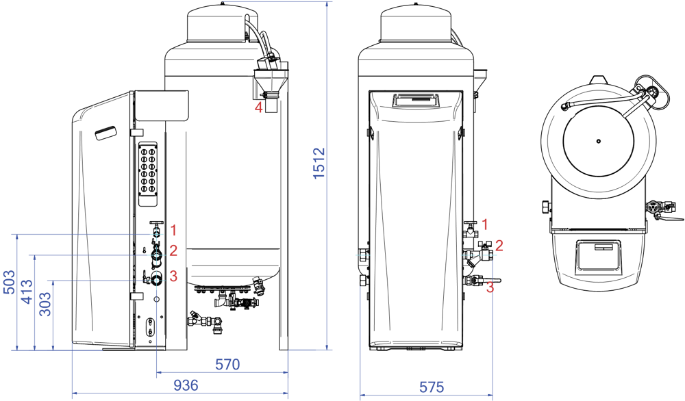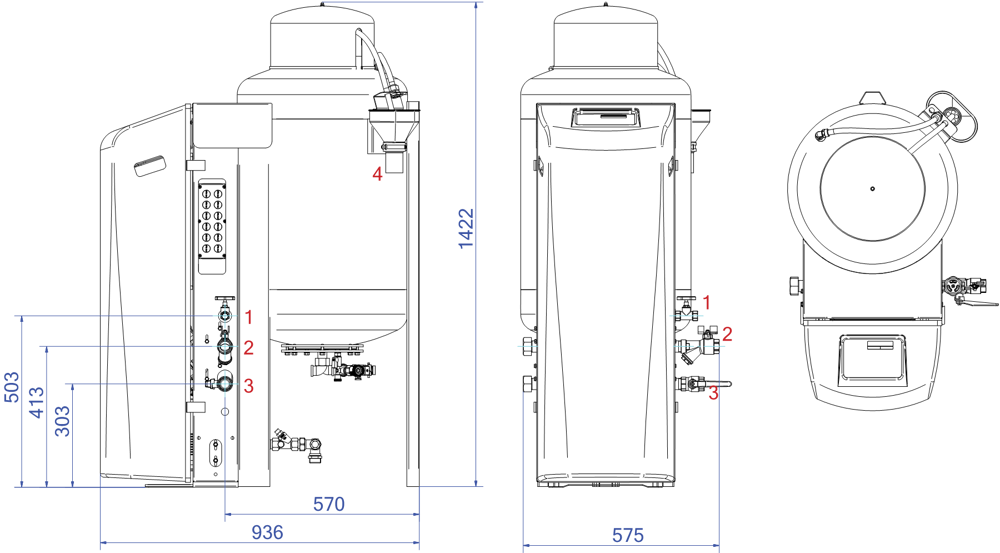 • The maximum temperature at the point of connection: 70°C (over 70°C possible with auxiliary tank)