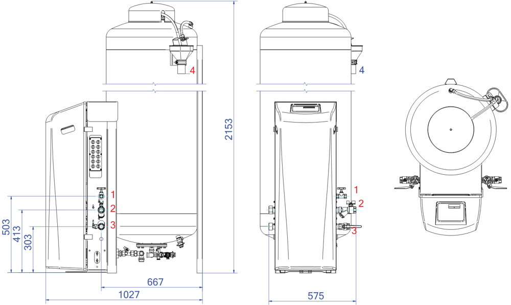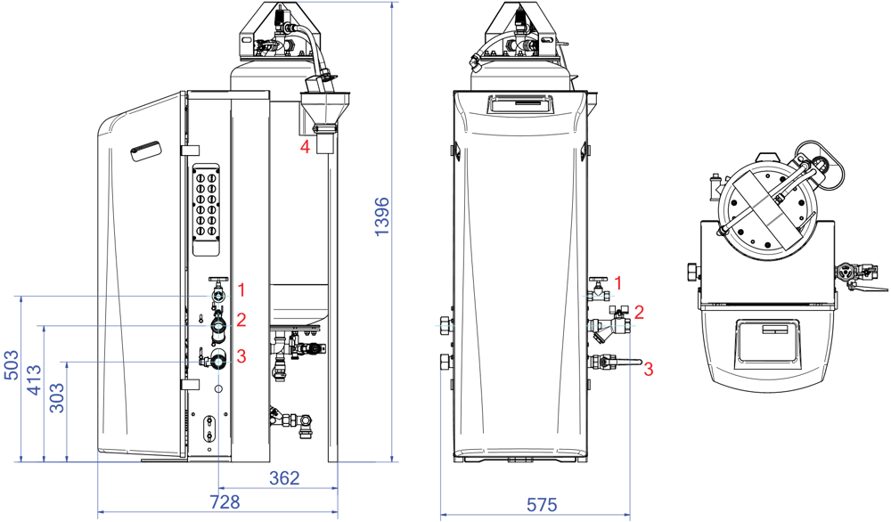The MultiControl Kompakt MAXI is an automatic expansion and pressure-maintaining device, with 2 pumps (2x 100%) and an overflow valve. An unpressurised expansion tank is integrated.
