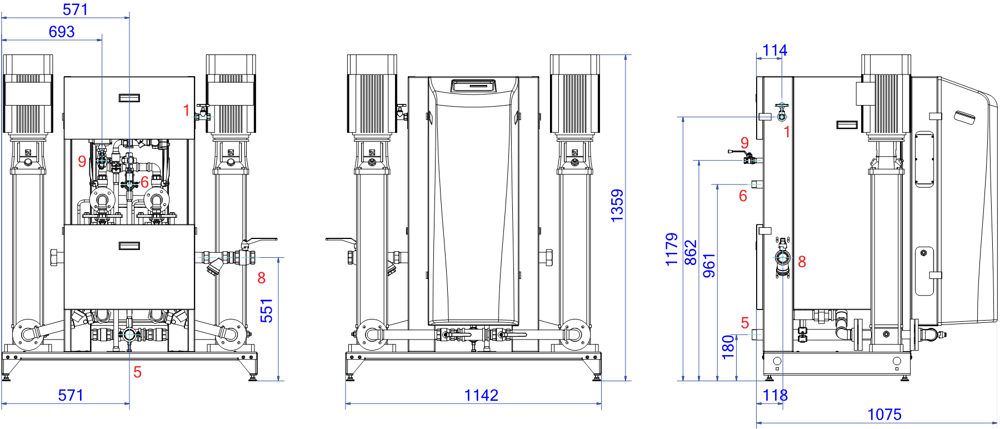The MultiControl Modular MAXI Twin is an automatic expansion and pressure-maintaining device. The unit contains 2 pumps (2x 100%) and 2 overflow valves. An unpressurised expansion tank is required.